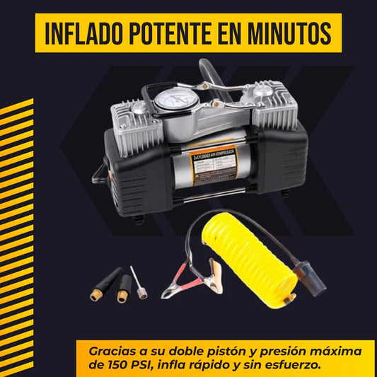 EN POCO TIEMPO SE ACABA EL DESCUENTOCompresor Portátil Doble Cilindro 12V – Poder 4x4 en tu Maletera